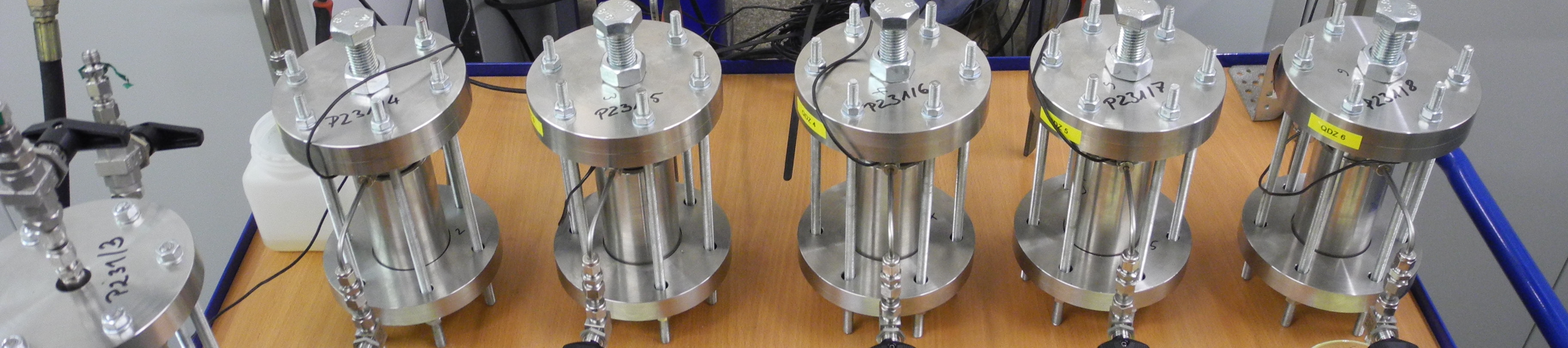 Die Quelldruckversuche werden in Druckzellen durchgeführt. Die Zellen ermöglichen Quelldrucktests an Proben mit einem Durchmesser von 50 mm und einer Länge von 50 mm. Hauptziele der Verwendung dieser Zellen sind: