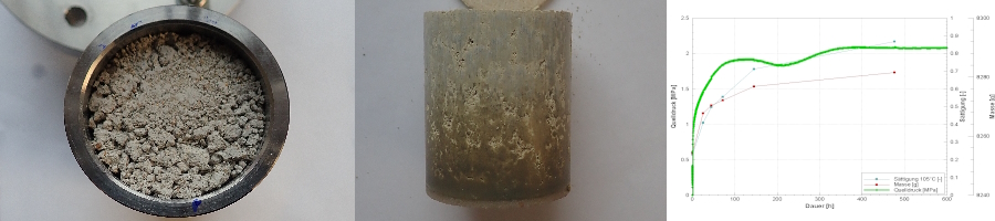 - Der entstehende Quelldruck wird mit einer Kraftmessdose in axialer Richtung erfasst.
